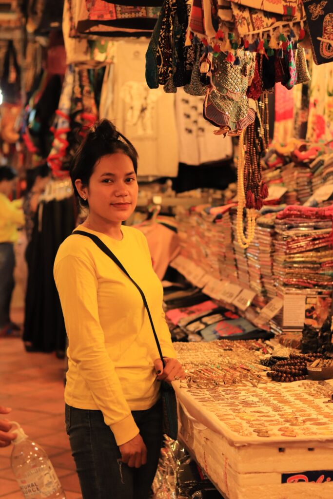 ស្រ្តីកម្ពុជាជាទូទៅបម្រើការងារនៅក្នុងវិស័យឧស្សាហកម្មកាត់ដេរ ទាំងនៅក្នុងផ្នែករោងចក្រ ឬប្រកបរបរលក់ដូរឥវ៉ាន់នៅក្នុងផ្សារ។ ថតរូបដោយ Chetan Hireholi.